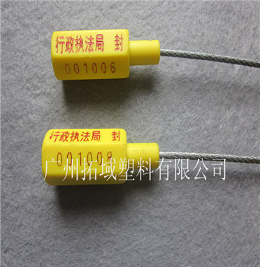 鋁合金鎖體、Φ5.0mm鋼絲,在鎖體上可打印序列號和LOGO,條形碼,鋼絲長度可以定制。特征鋼絲繩長度:250mm,可加長;鋼絲直徑:1.8mm;抽緊式,可隨意調(diào)節(jié);拉力強度:300公斤以上;鎖后須用斷線鉗移。